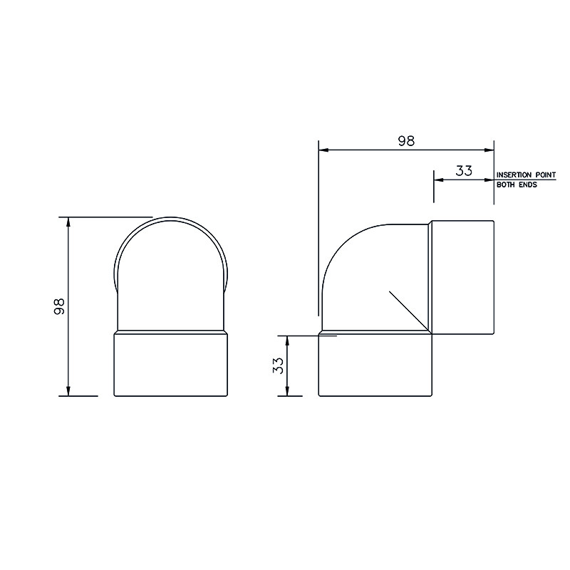 Floplast WS12BL 50mm (55mm) ABS Solvent Weld Waste System 90 Degree Bend - Black