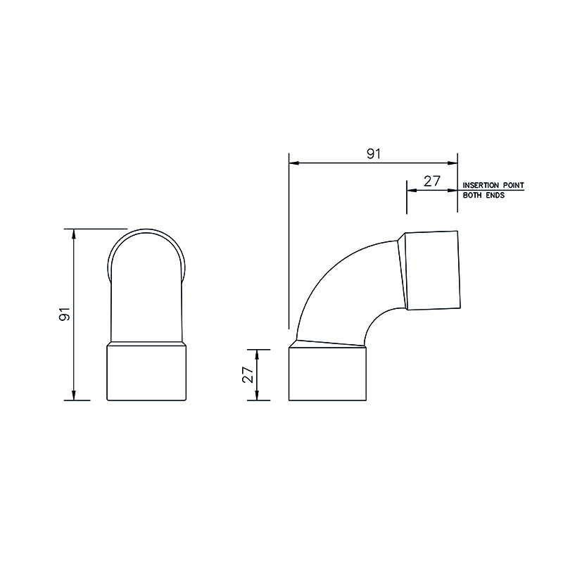 Floplast WS14GR 32mm (36mm) ABS Solvent Weld Waste 92.5 Degree Swept Bend - Grey