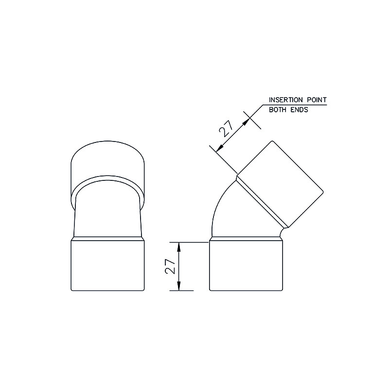 Floplast WS18BL 32mm (36mm) ABS Solvent Weld Waste System 135 Degree (45) Bend - Black