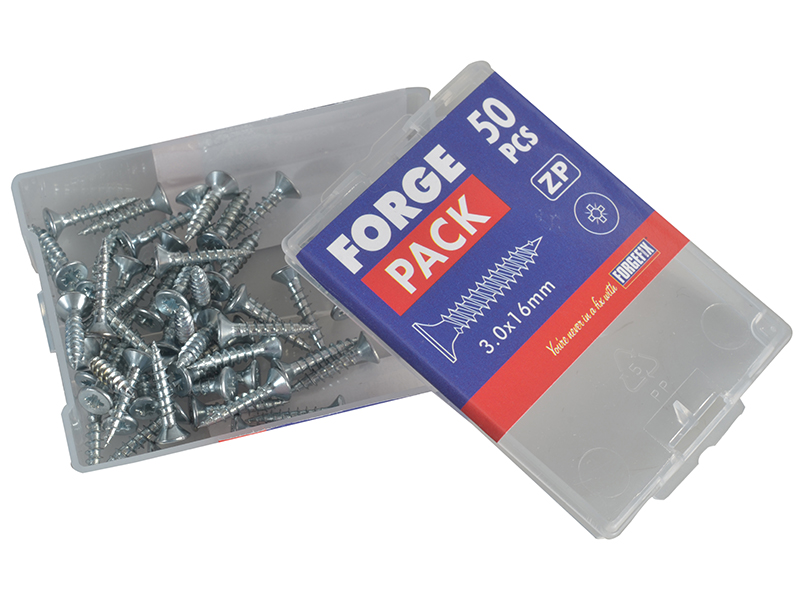 Forgepack Multi-Purpose Pozi Screws CSK ST ZP 3.0 x 16mm (Pack of 50)
