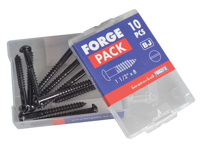 Forgepack Round Black Japanned Screws 1.1/2in x 8 (Pack of 10)