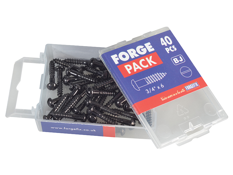 Forgefix Forgepack Wood Screw Slotted Round Head ST Black Japanned 3/4" x 6 Pack 40