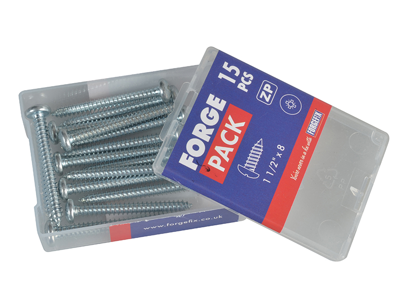 Forgepack Self Tapping Screws - Pan Head - ZP 1.1/2in x 8 (Pack of 15)