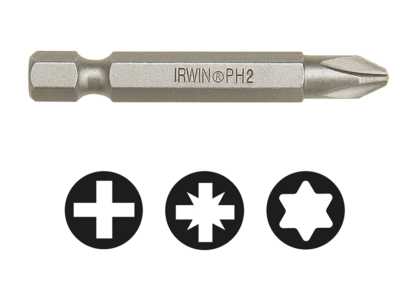 IRWIN® Phillips Power Insert Bits are manufactured from industrial-grade S2 steel for long life and durability. Engineered for use in hand-driving applications or with power tools when used with the IRWIN® insert bit holder. Power bits are