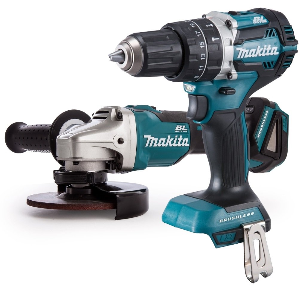 Makita 18V Brushless Combi Drill & 125mm Angle Grinder - 5.0ah Pack