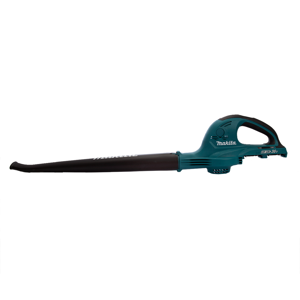 The Makita model DUB361 is a cordless blower powered by two 18V Li-ion batteries in series (not included) giving the equivalent power of a 36 volt machine.