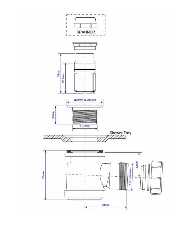 McAlpine 1.1/2in Shower Trap 70mm x 19mm - Chrome Plated (CP)