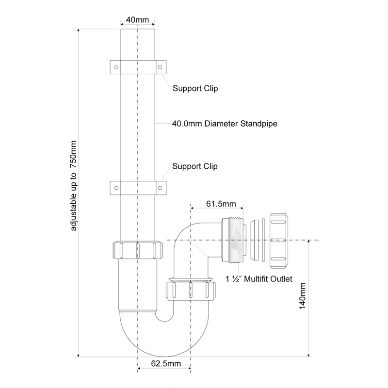 • 1.1/2" Multifit Compression Outlet suits all plastic, copper and lead pipe.