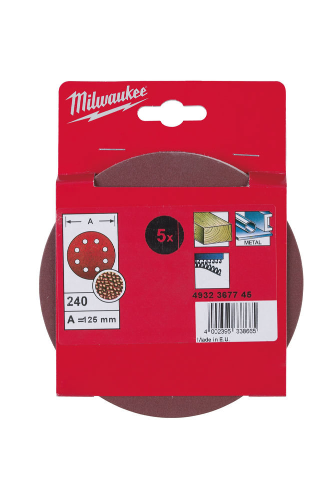 Milwaukee 125mm Sanding Discs 240G - Pk 5