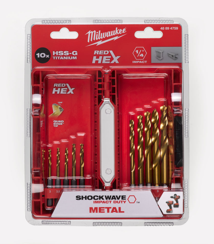 Milwaukee 48894759 10pc Red-Hex Shockwave HSS-Ground 10 Piece Titanium Drill Bit Set - 3mm < 10mm