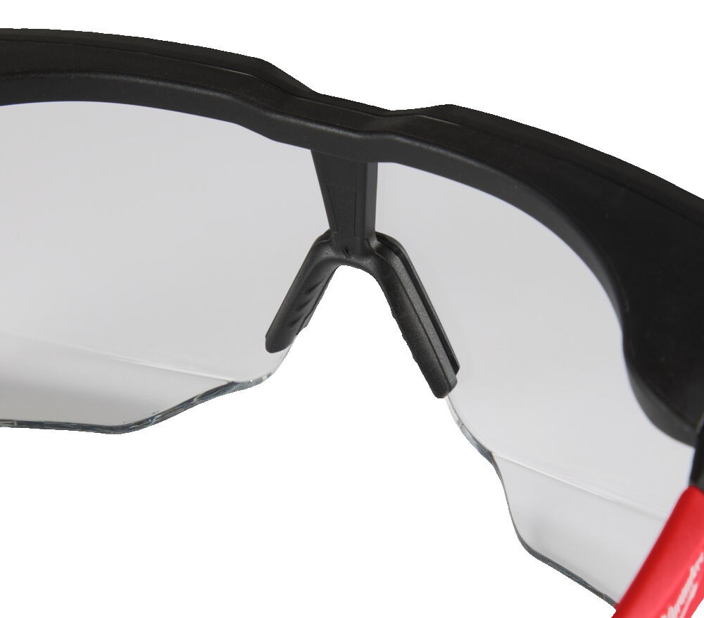Milwaukee Clear Safety Over Glasses, fully wraparound safety frames that securely fit over most popular prescription glasses frames. These clear safety over glasses come with durable anti-scratch lenses, long lasting anti-fog lenses and have been designed with comfortable and flexible arms for extended comfort wear. These Milwaukee Safety Over Glasses are European Certified to EN166, EN170 and EN172.