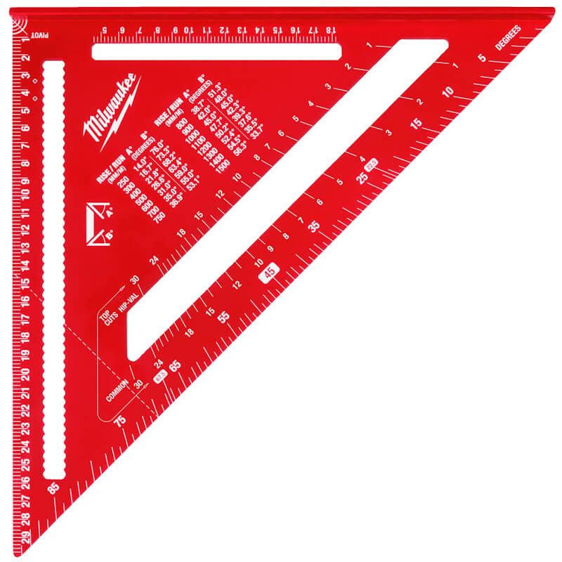 The Milwaukee 4932498717 Metric Framing Square is a compact yet durable measuring tool designed for precise marking and layout work. Its precision scribe notches make marking fast and accurate, while the high-visibility laser-etched measurements ensure