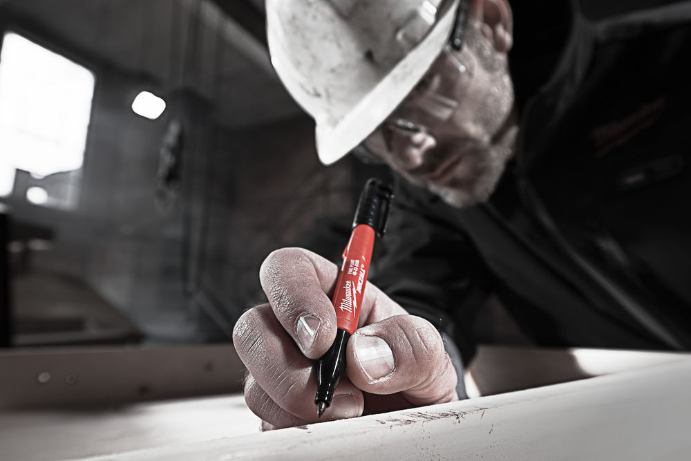 Milwaukee Inkzall Marker Pens can be used on wet, oily, dusty, rusty, with debris surfaces.