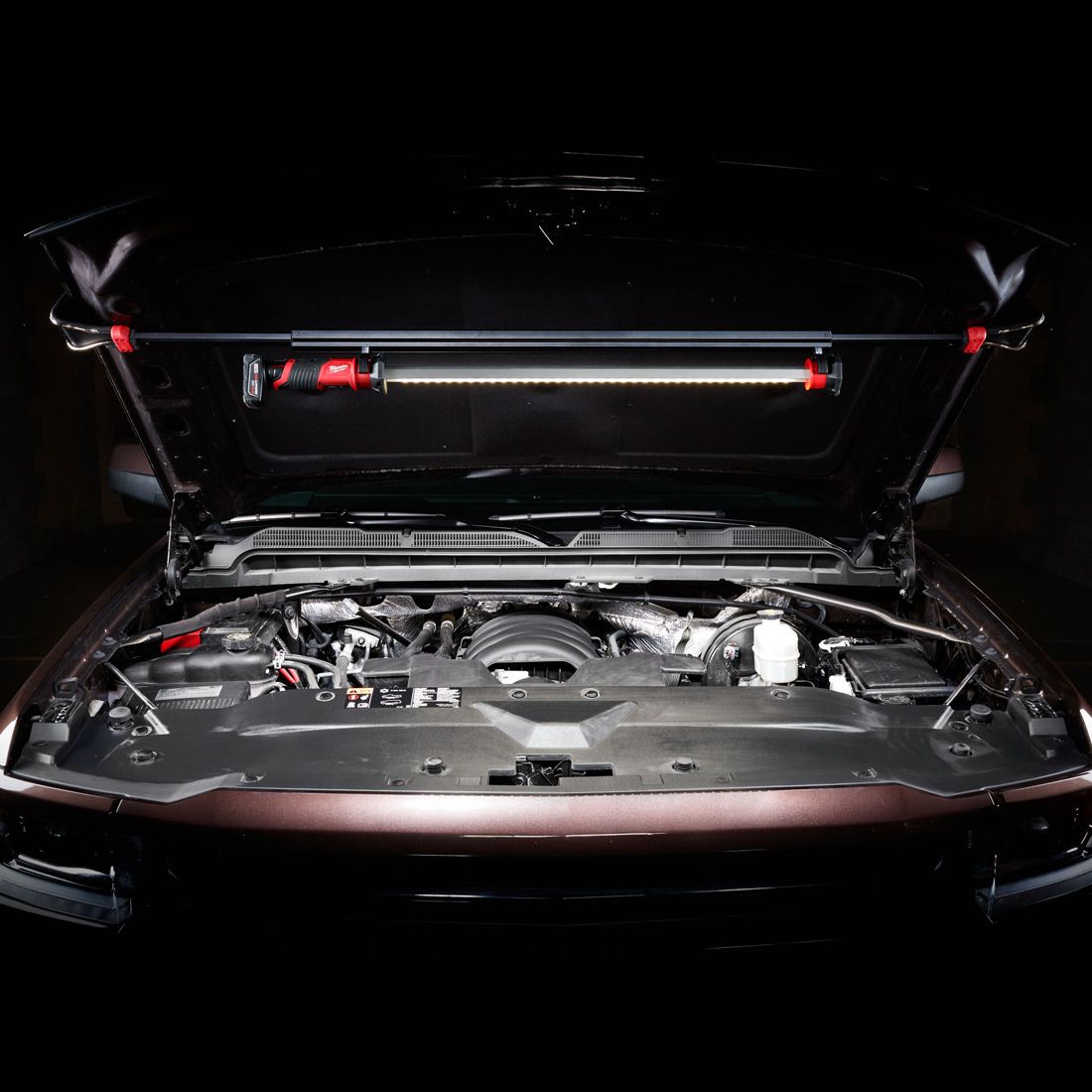 Flexible and versatile light bar to rotate vertically, adjust position and remove from the carrier to suit user needs. IP54 - protected from dust and splashing water.milwaukee, m12uhl0, uhl, 12, volt, m12, led, trueview, under, bonnets, hoods, engines, ca