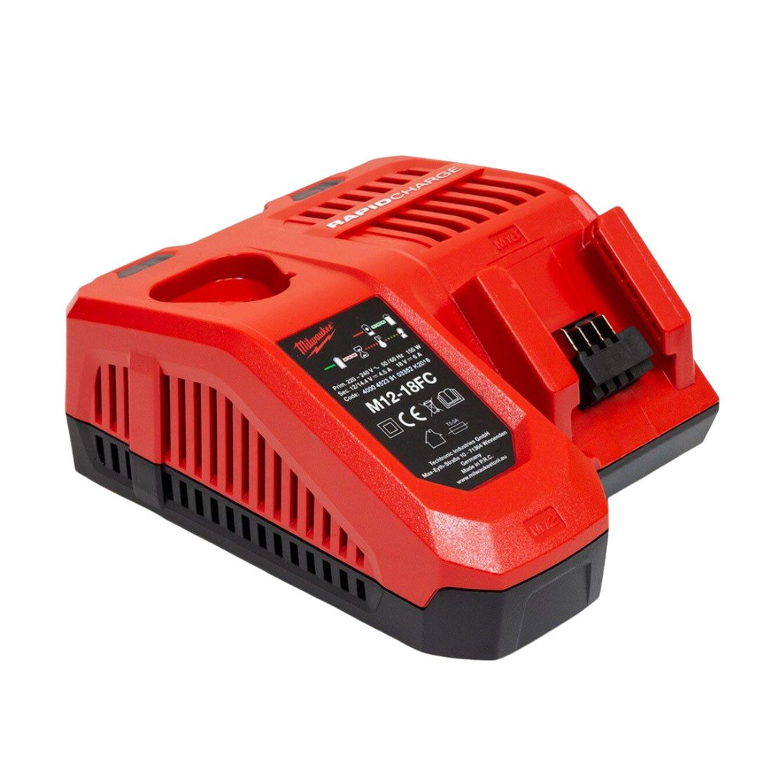 The Milwaukee M12-18FC Rapid Charger is capable of charging 12v, 14.4v and 18v batteries. Sequential charging: automatically charges second battery once the first is fully charged.
