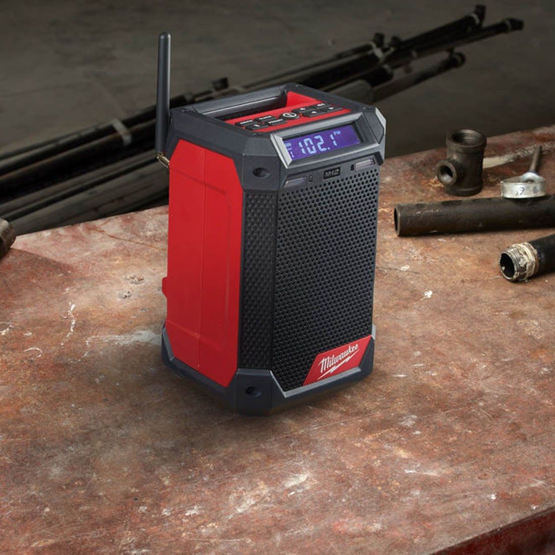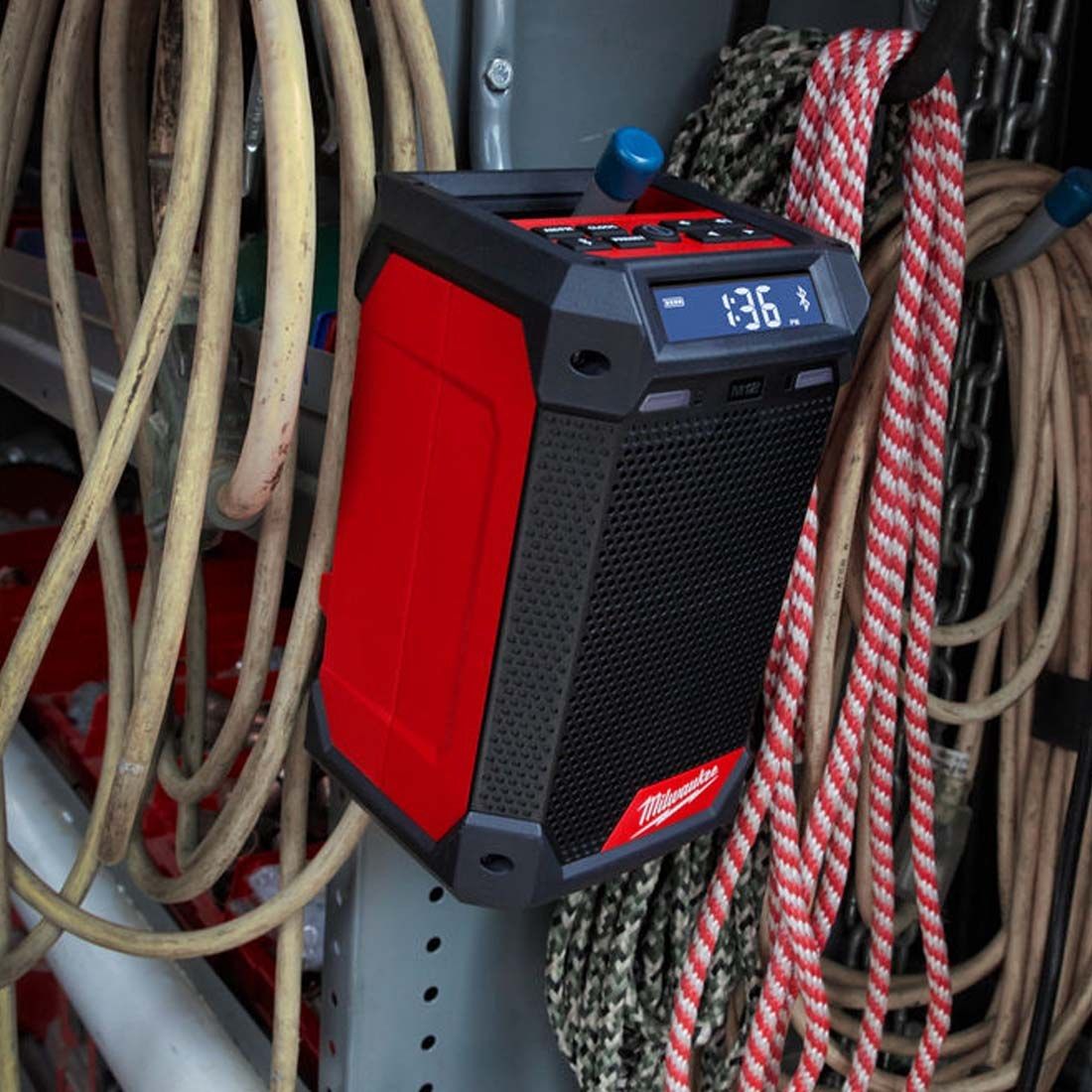 The Milwaukee M12 RCDAB+0 Radio with Charger delivers you unmatched sound for its size, allowing you to turn it up on and off the jobsite. This Bluetooth speaker with radio has a sleek integrated design, giving you various hanging options with a self-cent
