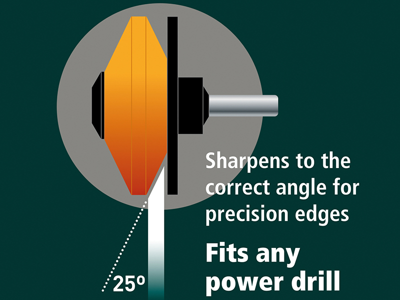 The Multi-Sharp® MS1301 Rotary Mower/ Garden Tool Sharpener, re-sharpens rotary mower blades in minutes. Without removing the blade from the mower. The Corundum grinding wheel provides fast sharpening. Wheel is reversible for up to 10 blade resharpenings and lasts for many years. It can also restore the working edge on spades, hoes and lawn edgers. Fits any power drill.
