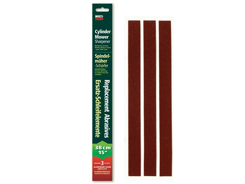 3 x Self-adhesive replacement abrasives for Multi-Sharp® mower sharpeners.