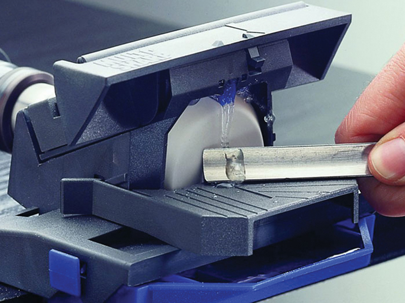 Water-cooling is acknowledged by professionals to hone the finest edges. The ‘ Whetstone’ uses re-circulating water to eliminate over-heating of the blade edge and loss of steel temper –‘blueing’. Simply fill the built-in reservoir with water, turn on the power drill and a continuous film of water covers the face of the grinding wheel.