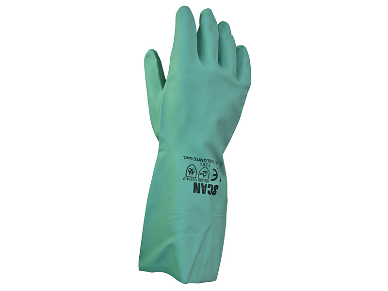 The Scan Green Nitrile Gauntlets are fully coated with a flock lining for moisture absorption. Gauntlets are food contact approved and offer superior chemical resistance to EN374-2 standard, protecting against oil, grease and most household chemicals. They are also resistant to abrasions and provide excellent grip. The long cuff provides added wrist protection.