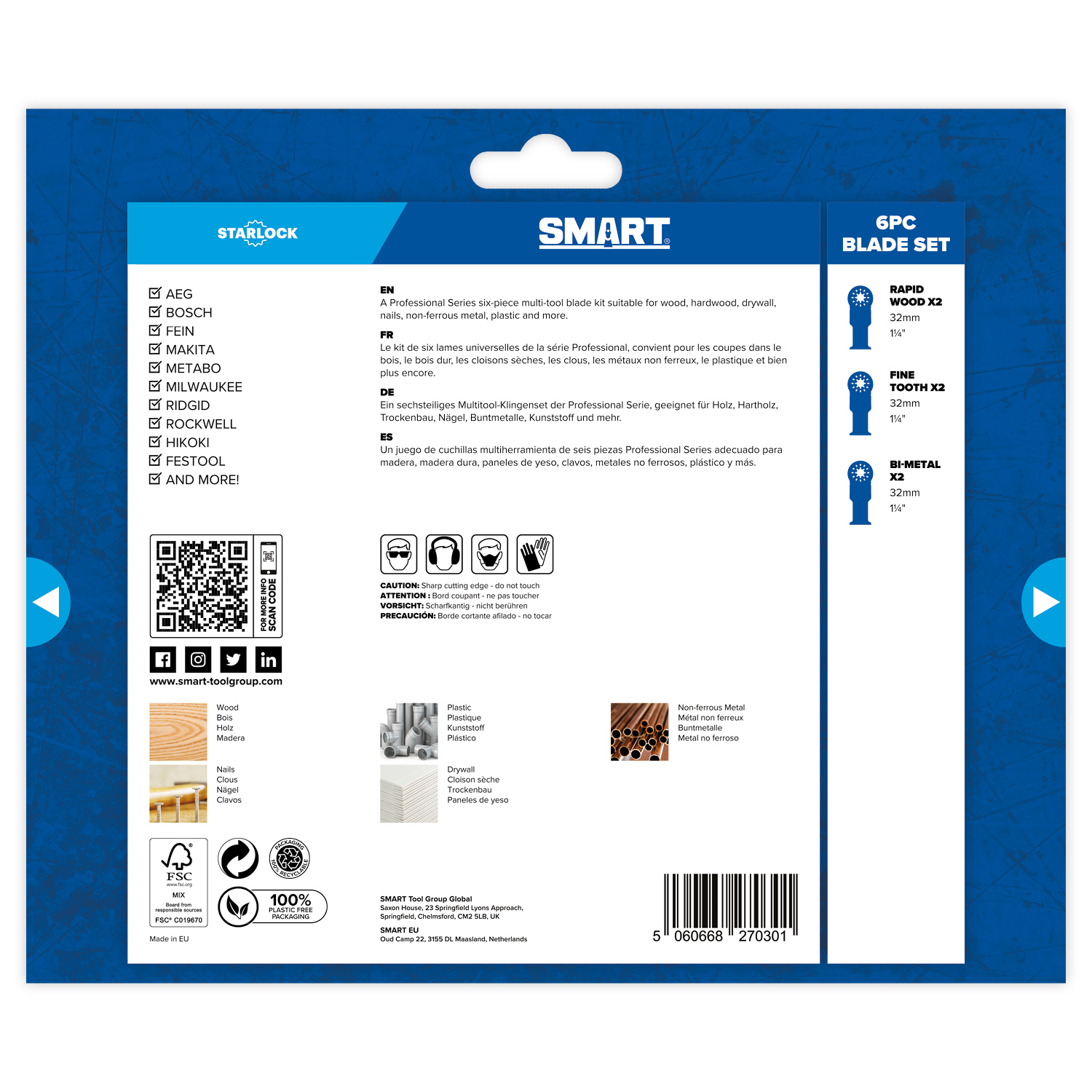 The Smart ST6MAK Professional 6 Piece Starlock Multi Tool Blade Set includes the most popular 32mm cutting blades.