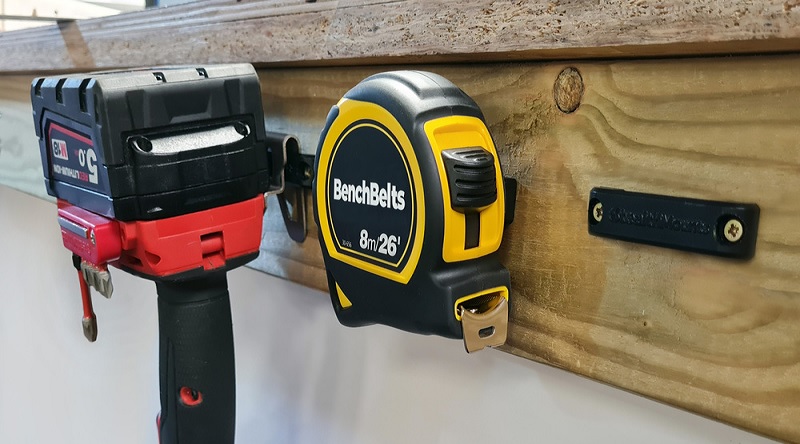 • StealthMounts Bench Belts are a Universal Tool Holder perfect for hanging tape measures, impact drivers, safety glasses etc.