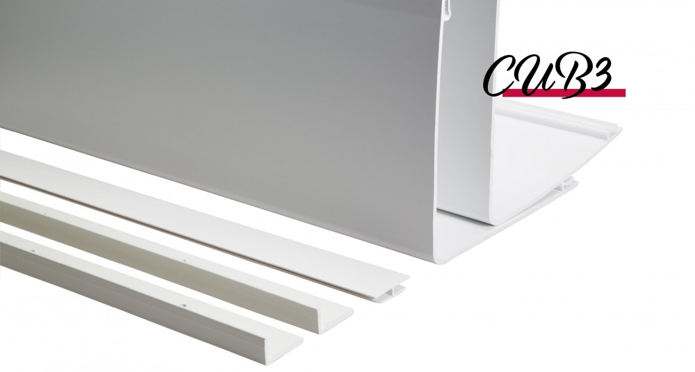 Supllied with 2x right angle sections (cover sections), 2x fixing strips, 1x centre joining strip