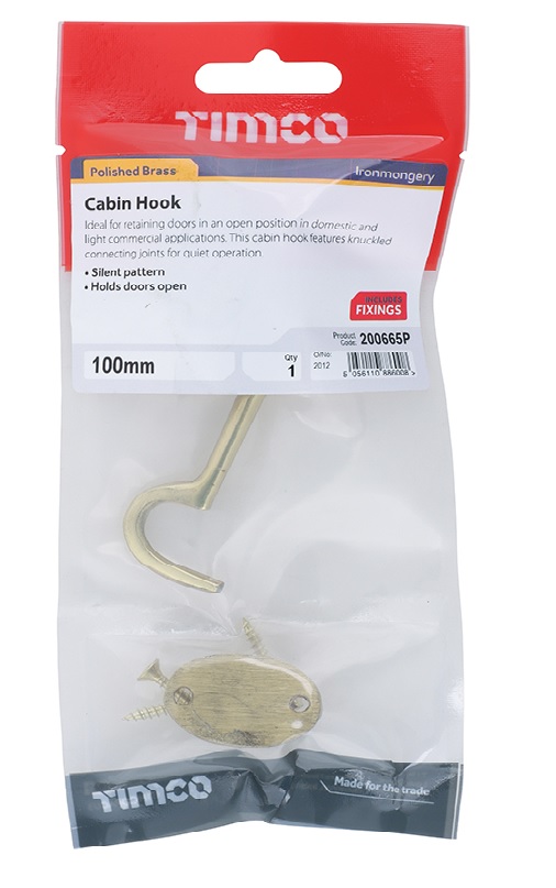 Timco 100mm - Cabin Hook - Polished Brass - TIMpac of 1