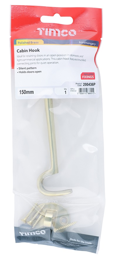 Timco 150mm - Cabin Hook - Polished Brass - TIMpac of 1