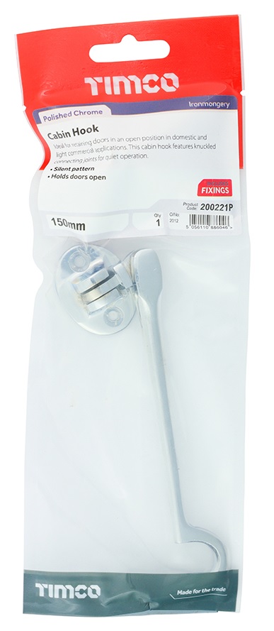 Timco 150mm - Cabin Hook - Polished Chrome - TIMpac of 1