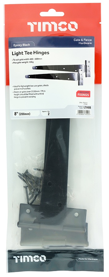 Timco 8 - Pair of Light Tee Hinges - Black - TIMbag of 1