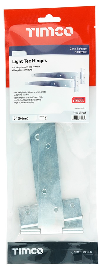 Timco 8 - Pair of Light Tee Hinges - Zinc - TIMbag of 1