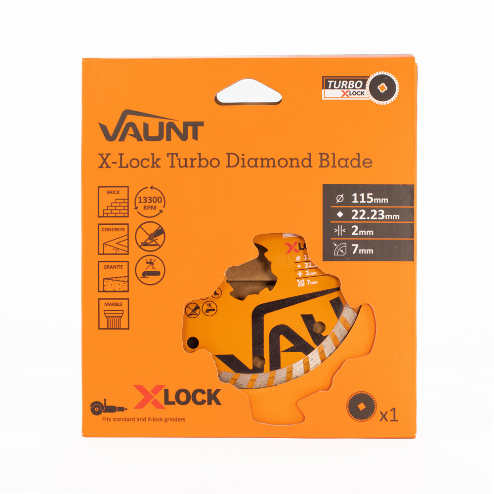 This Vaunt Diamond is perfect general purpose blade for wet or dry cutting. The continuous rim turbo edge enables fast cutting with a high-quality finish. The blades feature the X-Lock fitting system and are compatible with all X-Lock and standard fitting 115mm Grinders. This blade can be used on granite, marble, brick & concrete!,