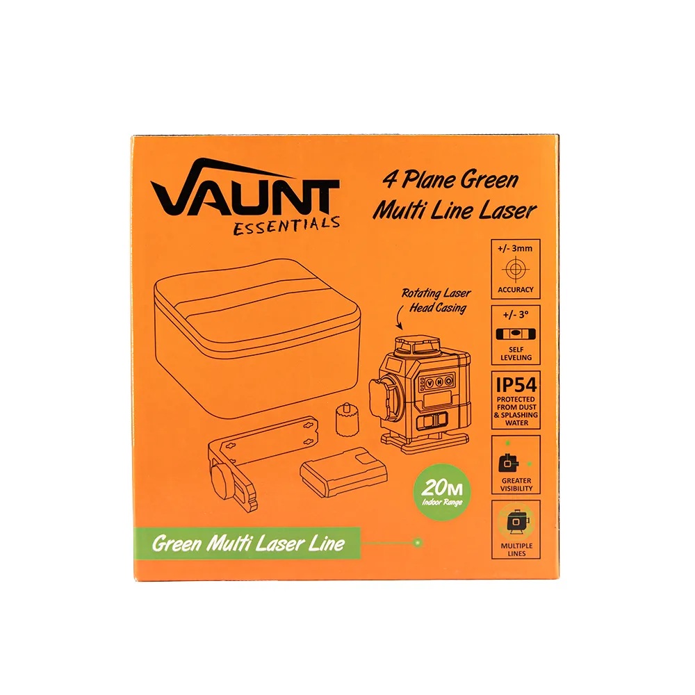 Take accuracy to the next level with the Vaunt Essentials Green 4-Plane Multi Line Laserprecision-engineered for serious tradespeople and savvy DIYers who wont settle for second best.