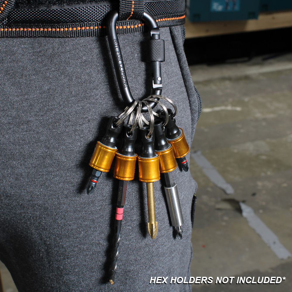 The Vaunt Locking Carabiner can be used for a variety of different functions and is ideal for use with our Keyring Hex Holders, for quick and convenient access to your most popular 1/4 hex shank bits. The quick-clip allows for easy attachment and the screw gate provides a secure hold and prevents the clip from opening., Multifunctional carabiner., 1x Vaunt Locking Carabiner