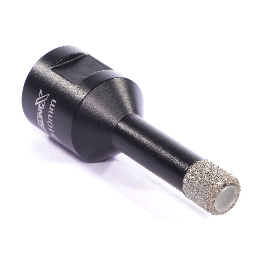 The Vaunt X Vacuum brazed diamond hole saws are ideal for the toughest materials such as granite, marble, porcelain tiles, stone and brick!! The M14 fitting allows direct connection to an angle grinder and the high diamond content and vacuum brazing process ensures a permanent bond giving long-life and outstanding performance and accuracy. Bits from 6mm - 18mm are pre loaded with a wax to prolong the life of the bit and protect the work piece, High diamond count, 1 x 10mm Diamond Holesaw