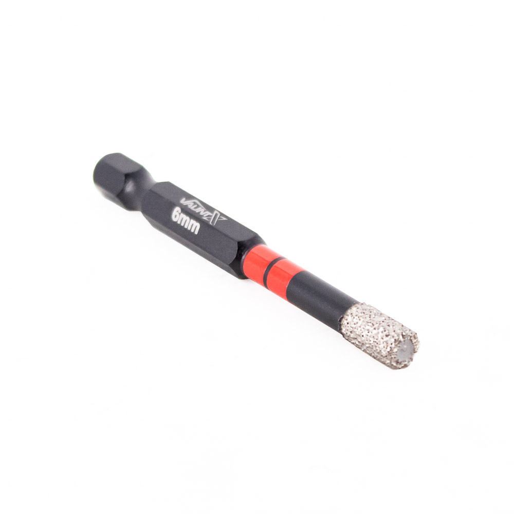The Vaunt Vacuum brazed diamond drills are premium quality bits that are perfect for drilling precise & clean holes in marble, masonry, concrete, porcelain, ceramic and glass. The vacuum brazing technology creates a far stronger bond for the diamond coating, allowing for increased durability and longevity. The wax filled centres allow the bits to self-cool, protecting the material and prolonging bit life. These truly are a premium quality drill bit , Diamond coating with vacuum brazed technology, 1 x 6mm Diamond drill bit