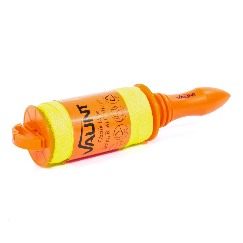 The Vaunt string reel with quality braided yellow fluorescent line makes viewing the line at a distance far easier, Great for staking out sites, concrete work and landscaping. Fits all lines with 1 cores from 4 to 6 long, reload rolls of line easily. Rewind hand crank., Fluorescent yellow for added visibility, 1 x Vaunt Yellow String Reel 100m
