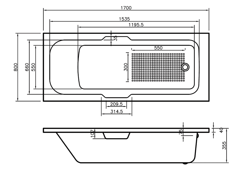 Qualitex Virginia 1700 x 800mm Single Ended Acrylic Bath 5mm