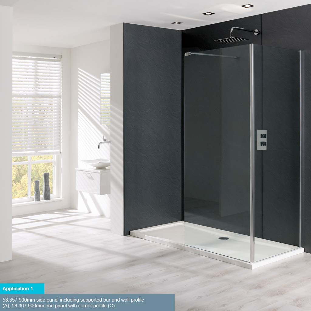 Volente/Valliant ceiling support bar Features: Chrome profiles. Support bar compatible with both 6mm and 8mm glass. Compatible with both Volente & Valliant shower enclosures.