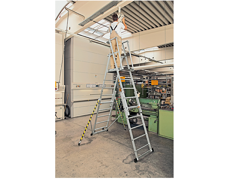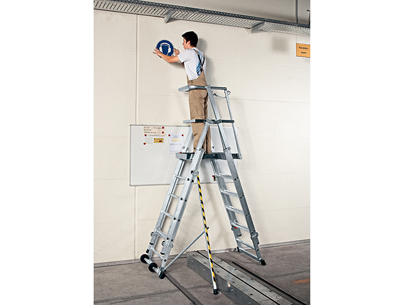 The Zarges ZAP Access Platform is a telescopic platform for working at a height of up to 4.30m, which is developed according to the latest EU Directives for working at heights. The platform has a large standing surface (665mm x 440mm) with guard rail and