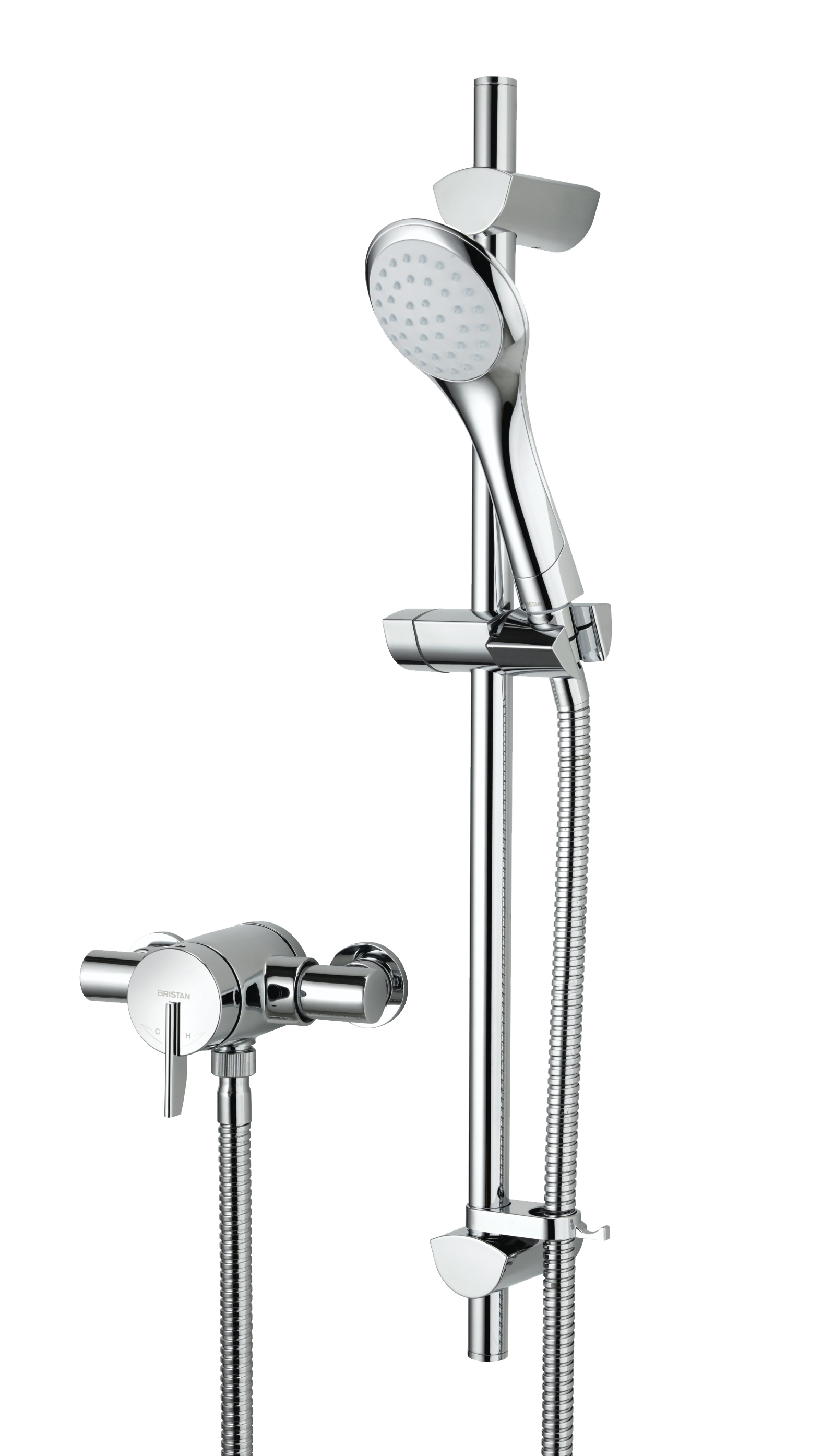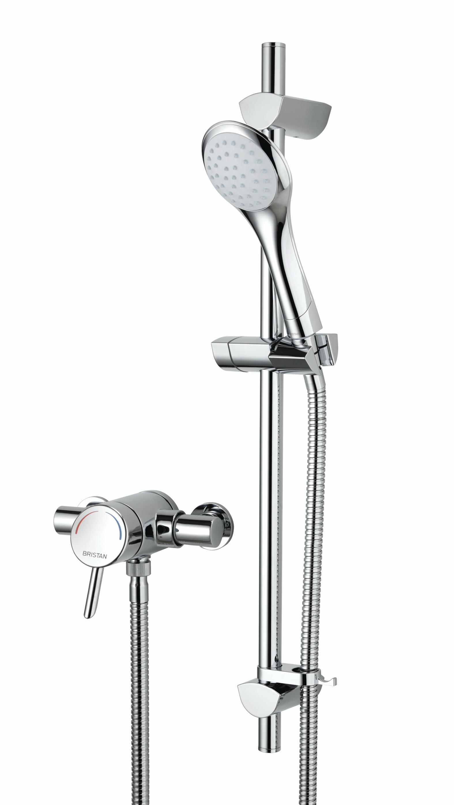 Bristan Sonique Exposed Thermostatic Single Control Mini Shower Valve With Adj Riser Kit and Single Function Handset Chrome