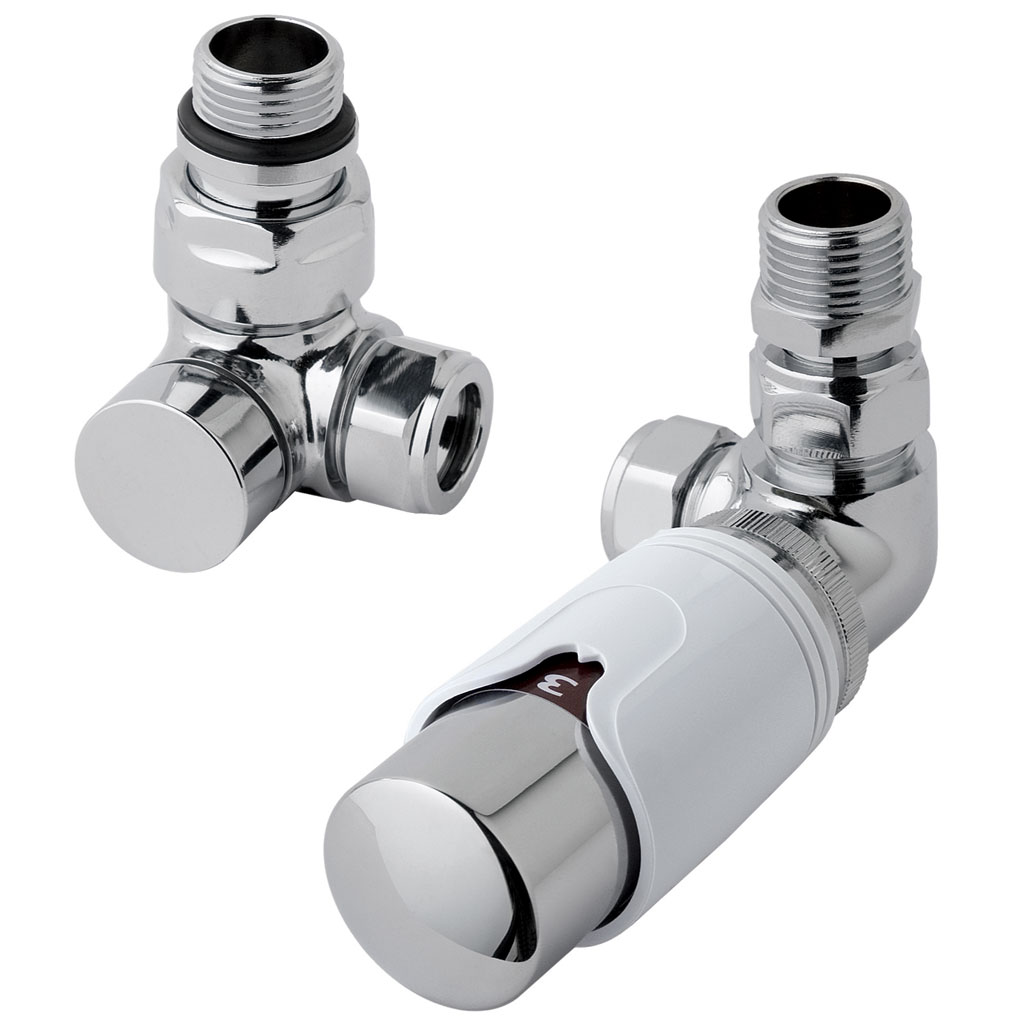 New 15mm Corner TRV and Lockshield Valve Chrome/White